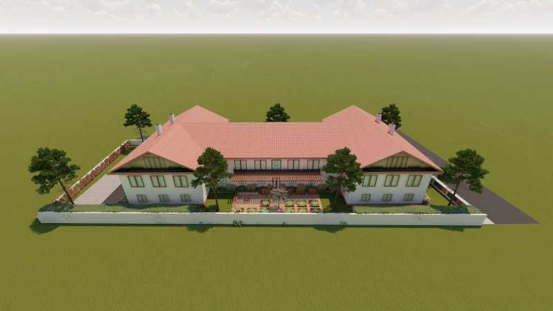 Pozemek je určen ke stavbě bytového domu o rozloze 780 m² s nezastavěnou plochou o rozloze 1056 m².